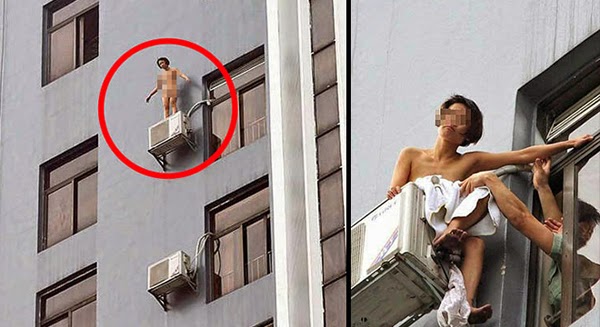 صينية تسبب فوضى لرقصها عارية على حافة نافذة فندق
